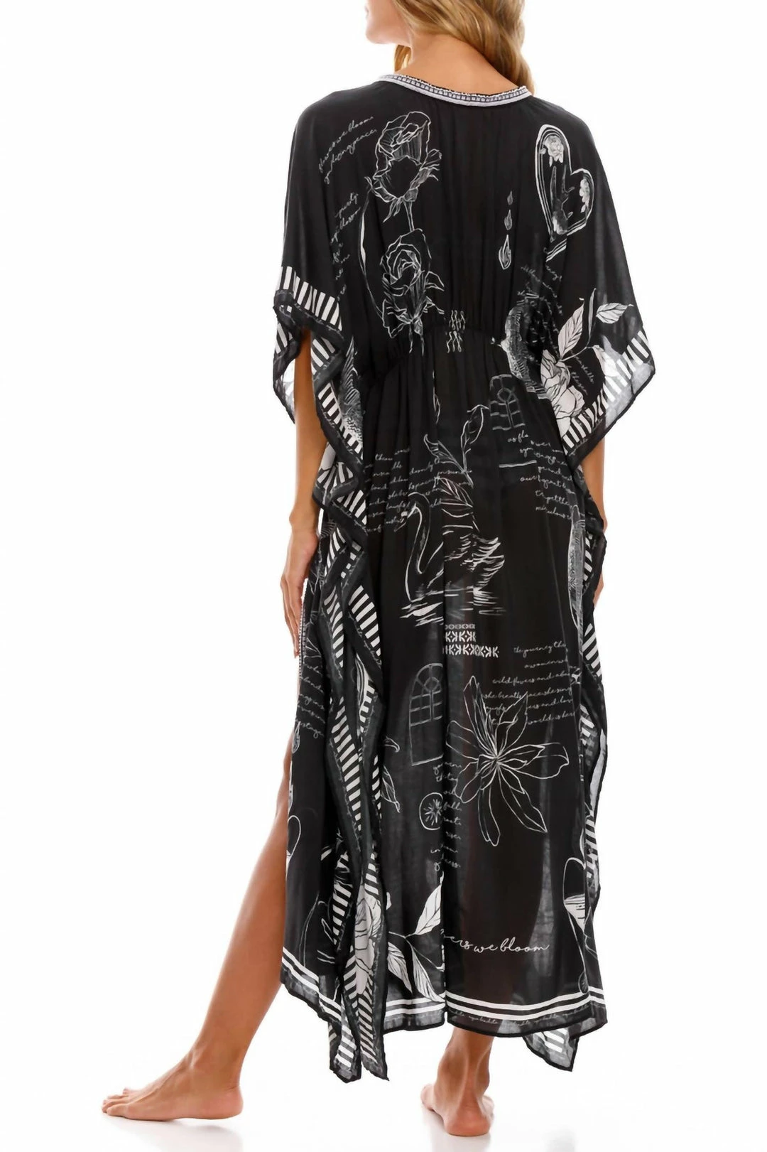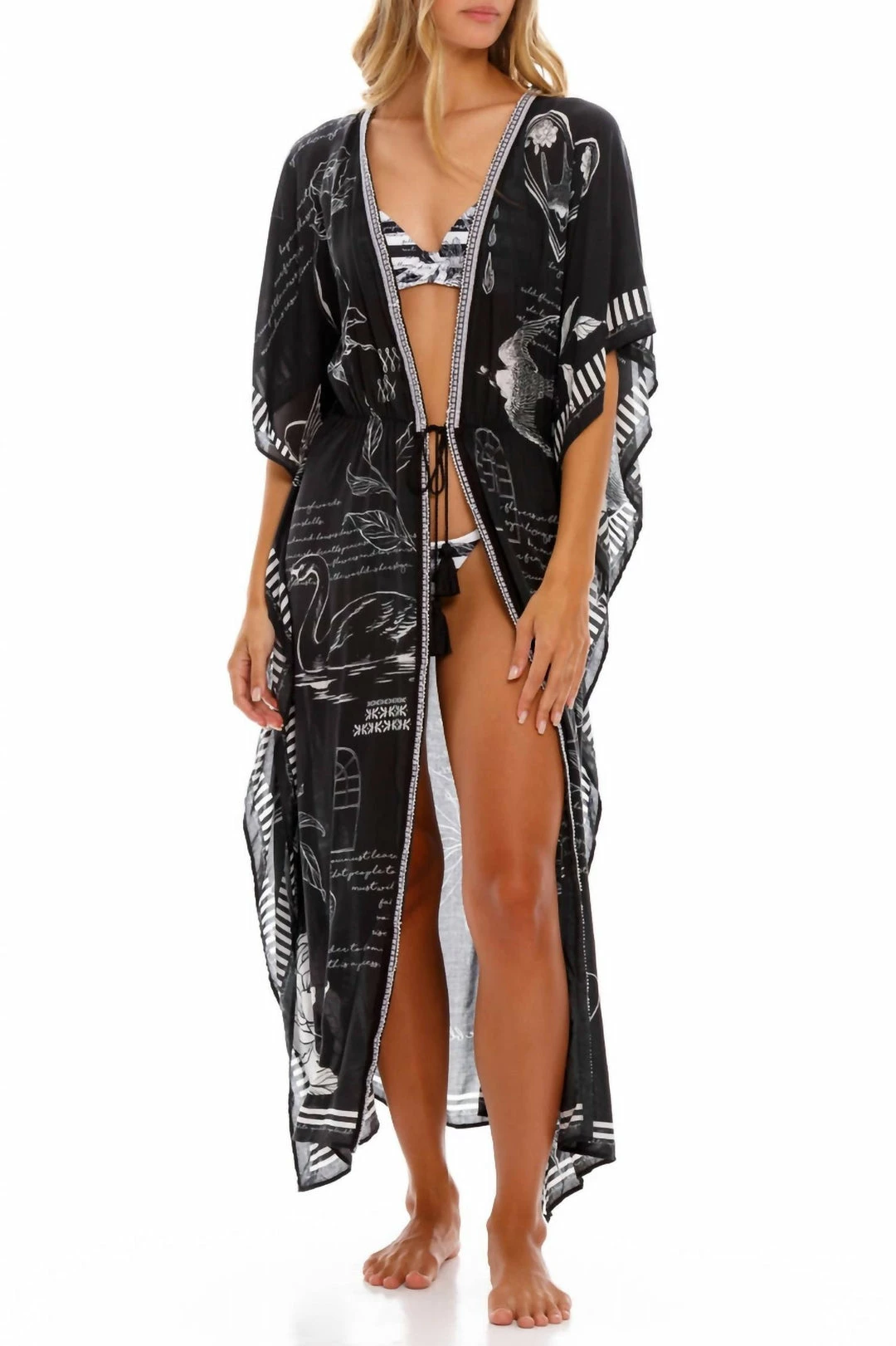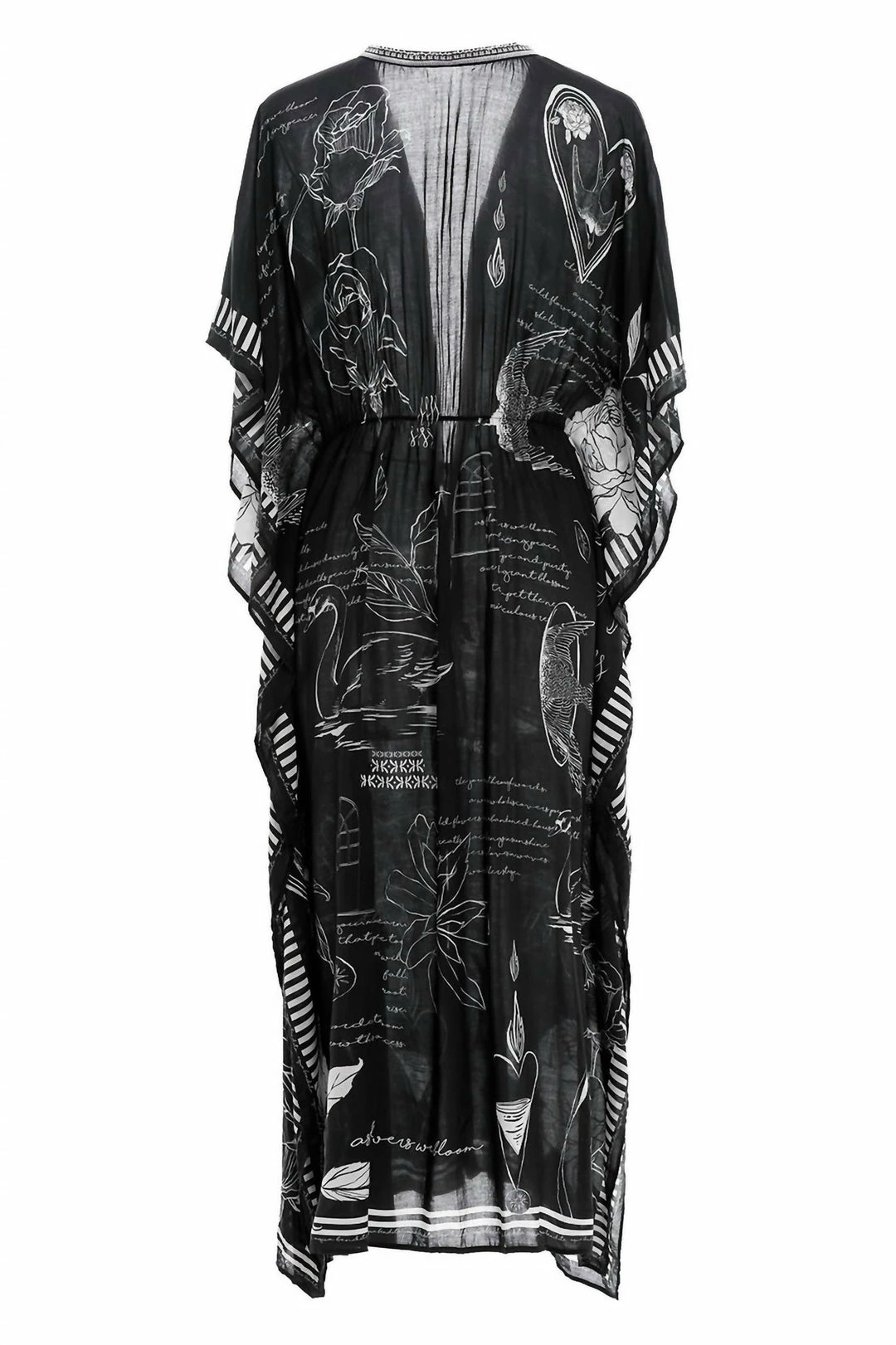 Deep V neckline. Oversize short sleeves. Adjustable tie closure at waist. Made in Colombia