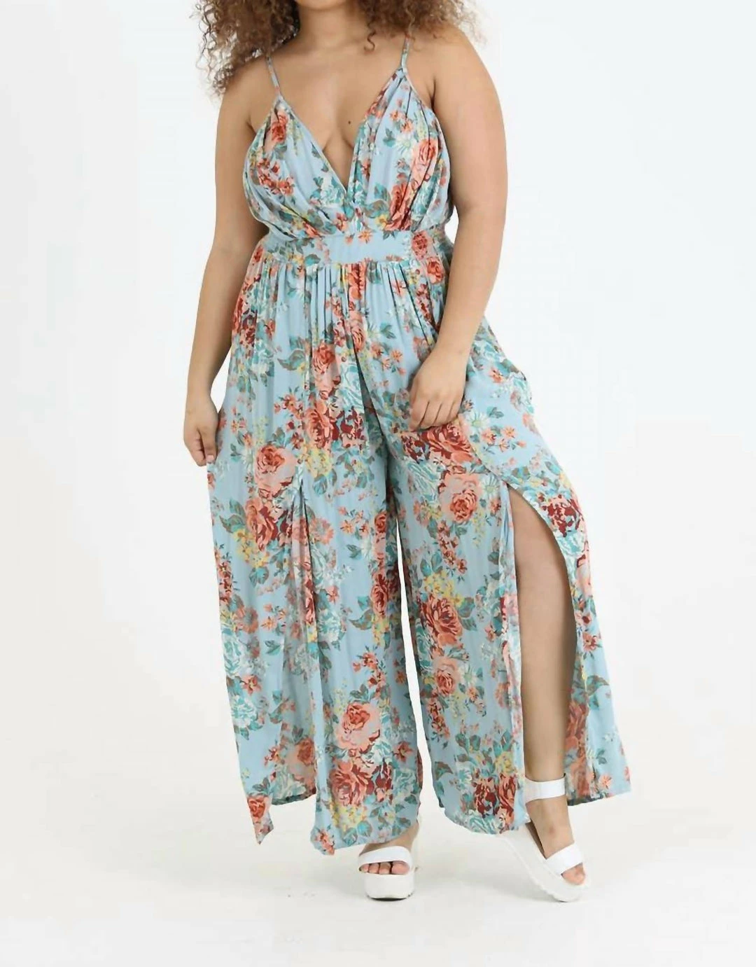 V NECK JUMPSUIT WITH SLIT WIDE LEGS