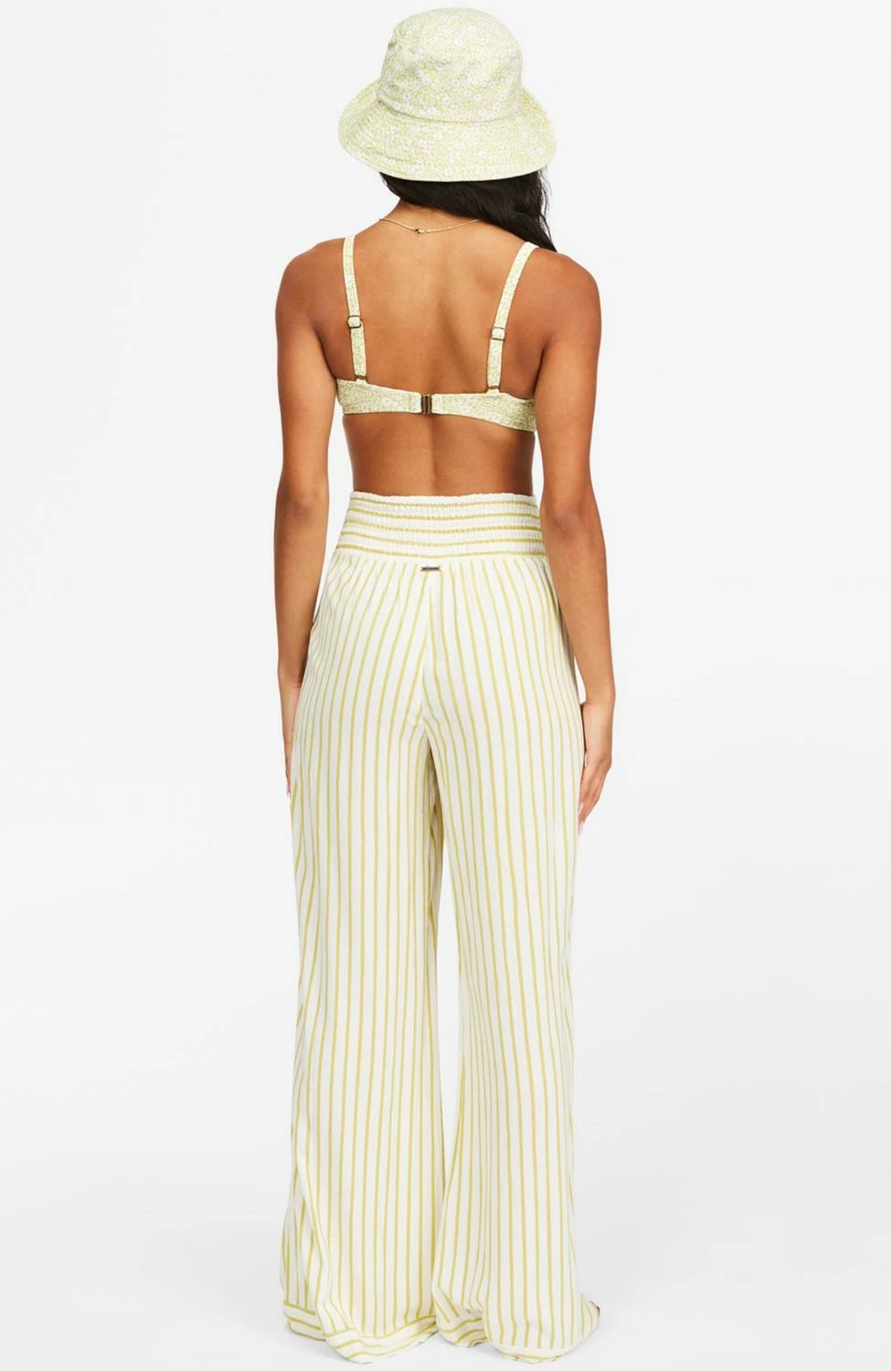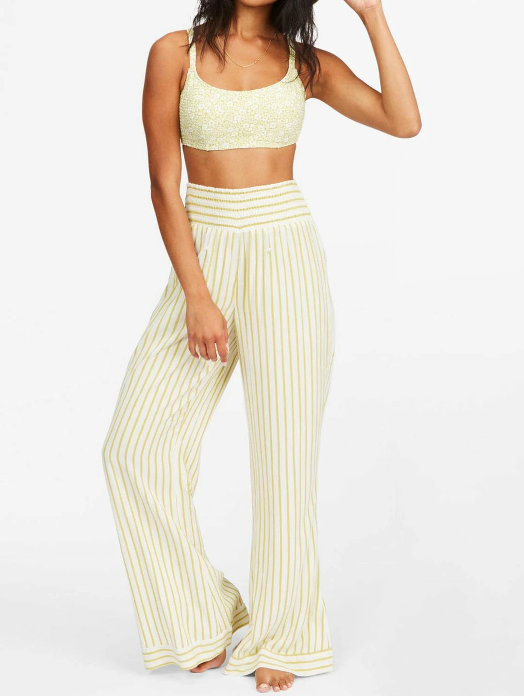 Made with striped crinkle fabric, the women’s pant from our Sunny Side Up Collection is high-waisted with a fitted, smocked waist and a wide leg. Comfortable. Essential. Timeless. Pair them with your bikini or an oversized knit for the ultimate beach babe vibe.