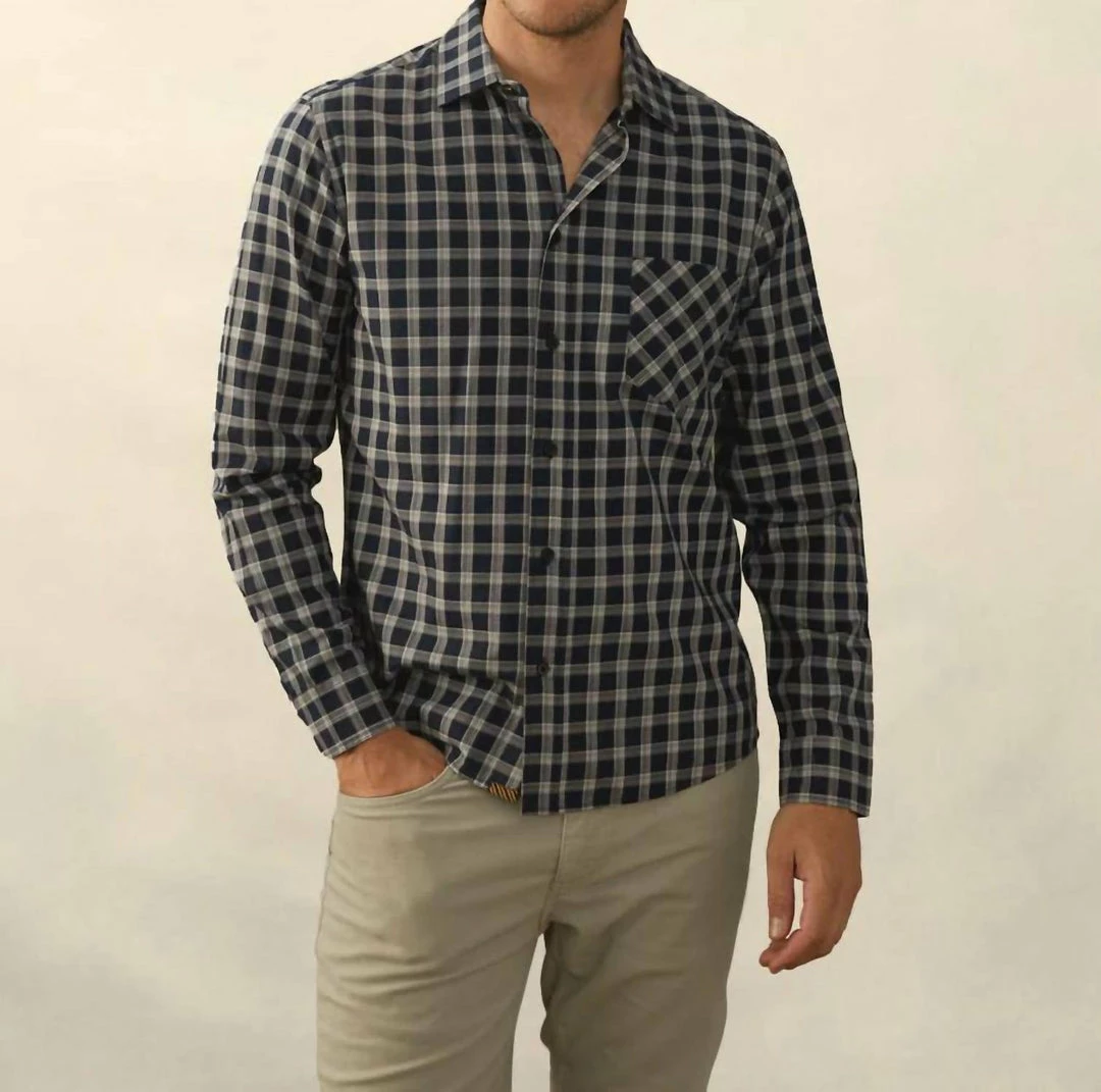 Cut in our Standard fit, for more room to move, it features a straight collar, chest pocket, and genuine mother-of-pearl buttons. This version is crafted in India from 100% cotton with a custom plaid that’s exclusive to Billy Reid.DETAILS100% CottonMade in IndiaMachine wash coldModel is 6’2″ wearing size MFIT Standard fitRelaxed through the chest, body and sleeves