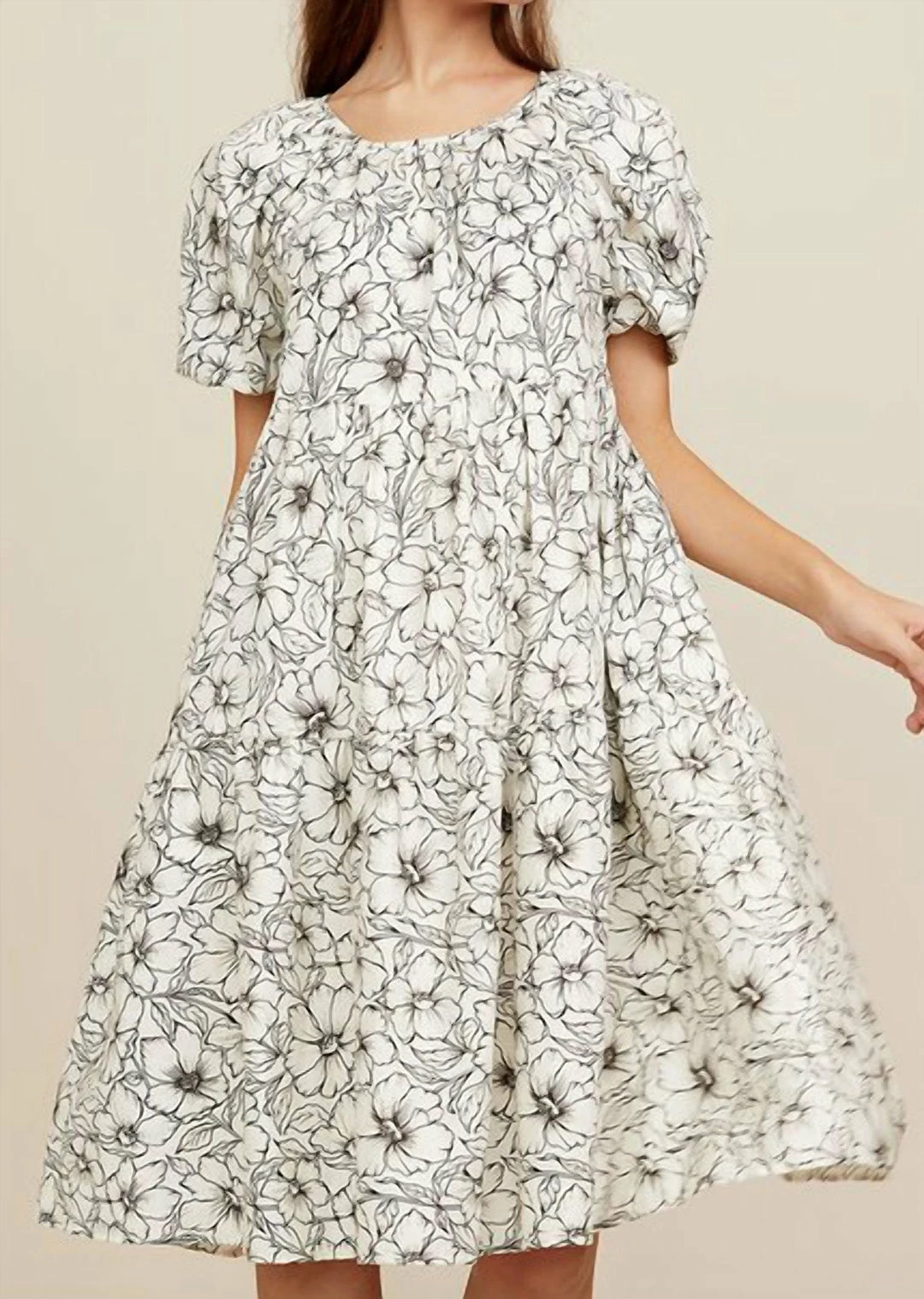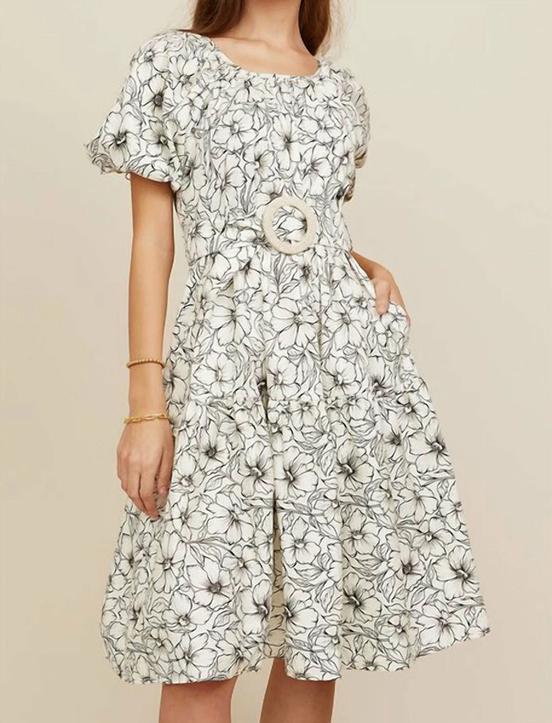 This midi dress features a short puff sleeve, with a three-tier skirt. Pockets provide a casual flair, giving ease to your everyday dressing. Ships with a self belt, buckle is not included.Hand/Machine washableFits true to size.