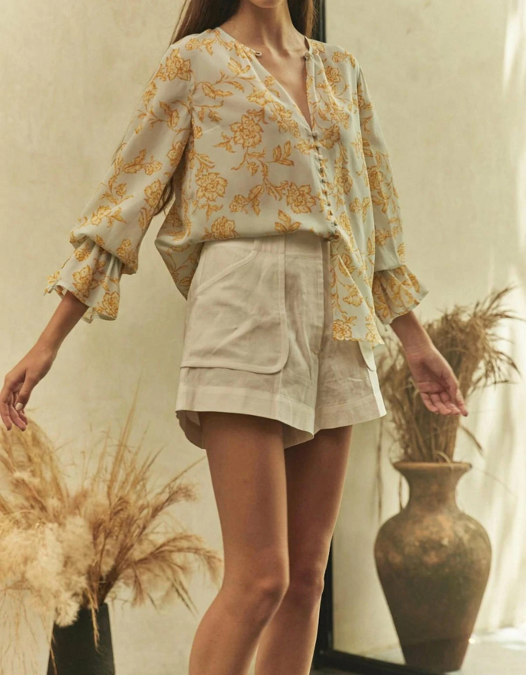 Be the first to review “Christy Lynn Ballet Top in Yellow Floral – women” Cancel reply