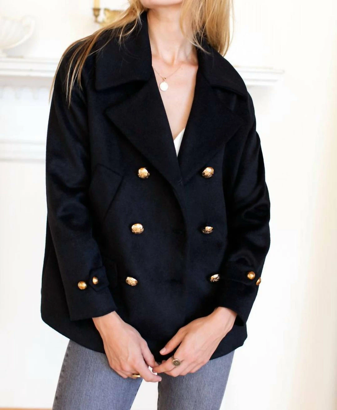DetailsCashmere woolDouble breastedMenswear inspiredWelt angled pockets at waistFlap front pockets at hipNotched lapelGold toned hardwareCuff strap detailFully linedModel is wearing a size smallGreen dry clean