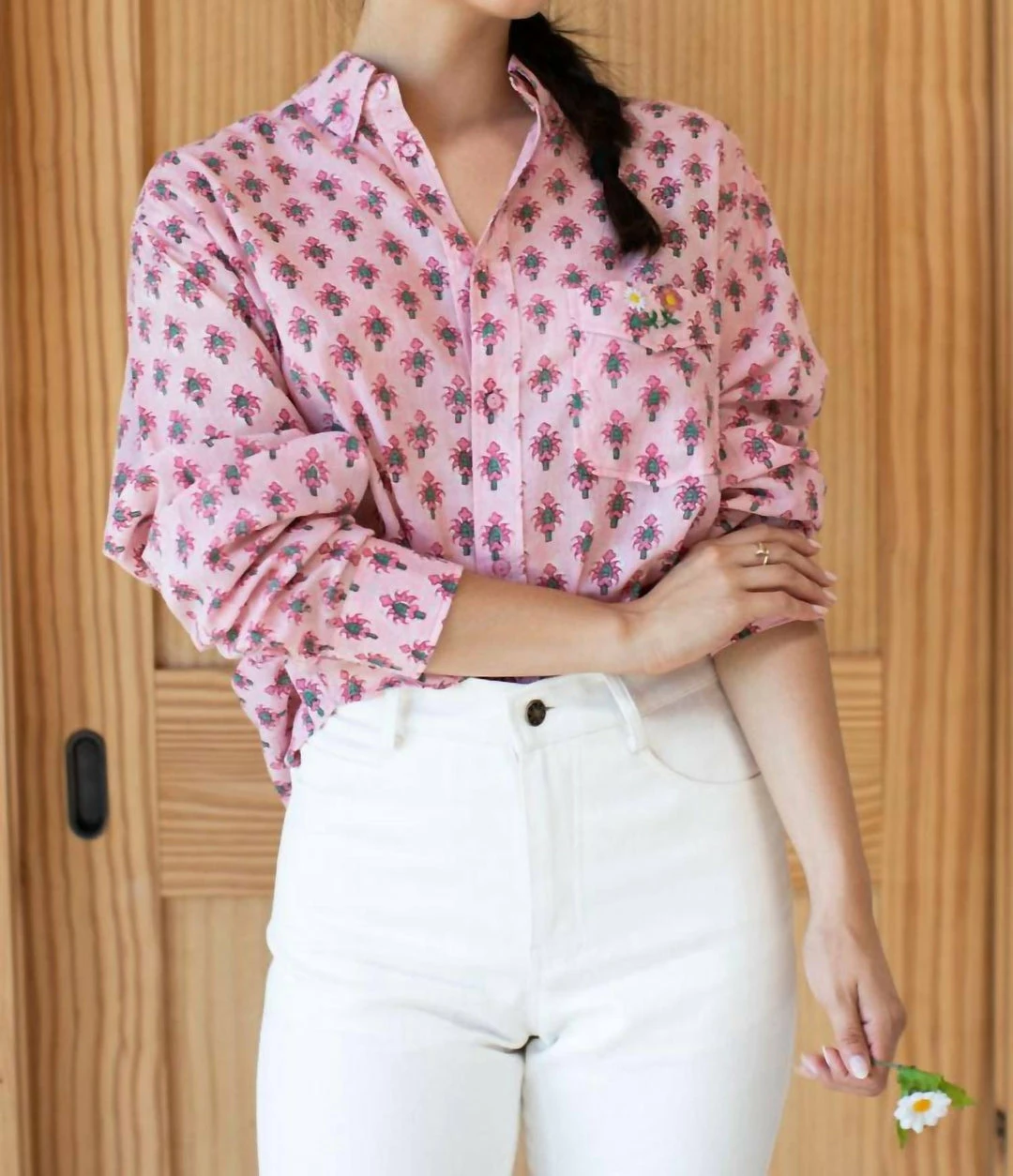 100% Light-weight CottonHand block printed using low impact dyeMenswear inspired button downClassic shirt collarChest pocket with embroidered detailFull length sleeves with button closure at cuffShirt hem with side seam detailYoked back with center pleat and loopRelaxed throw over everything styleUnisex style
