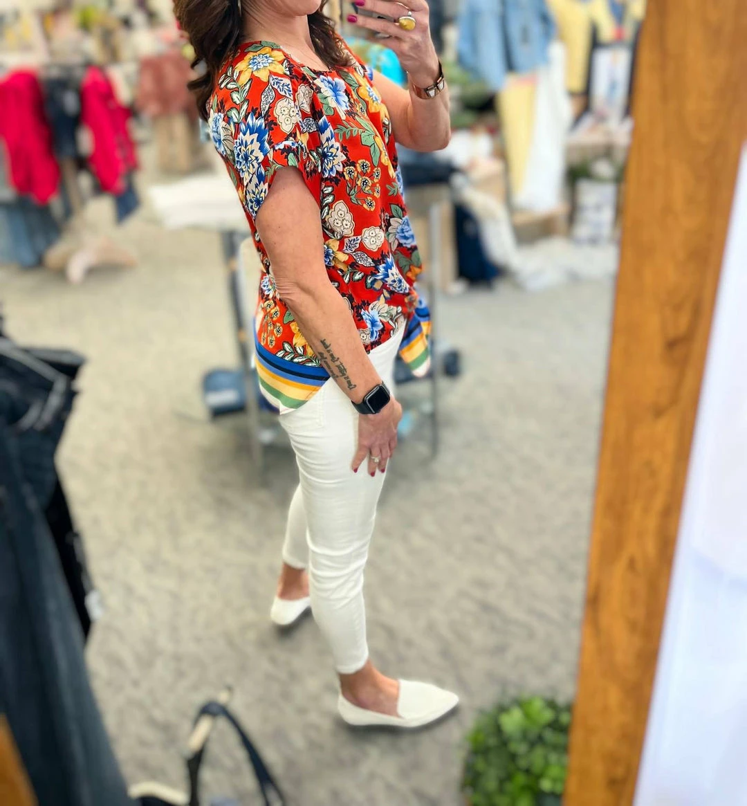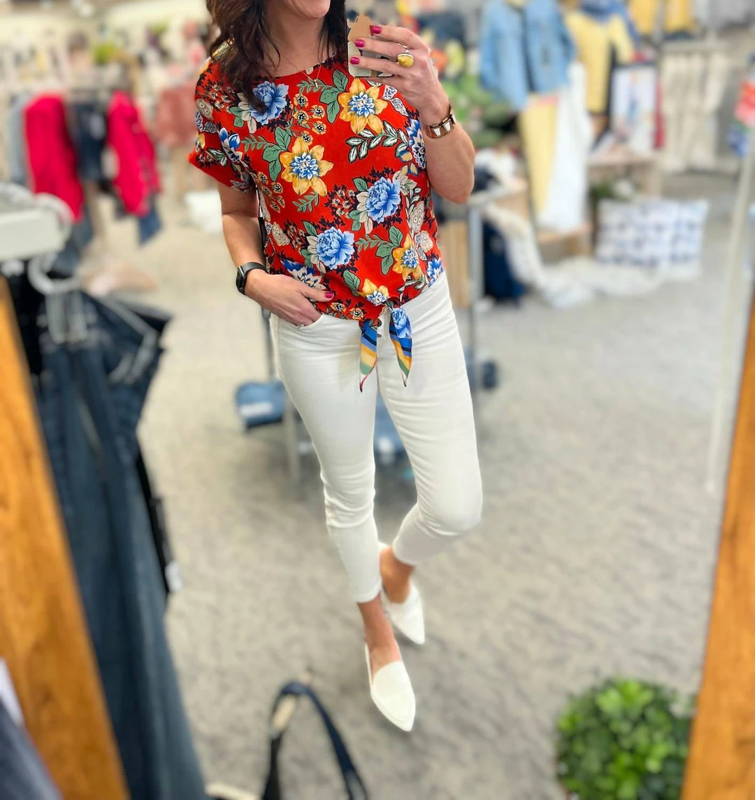 Be the first to review “Gabby Isabella Bettye Tie Front Top in Red Floral – women” Cancel reply