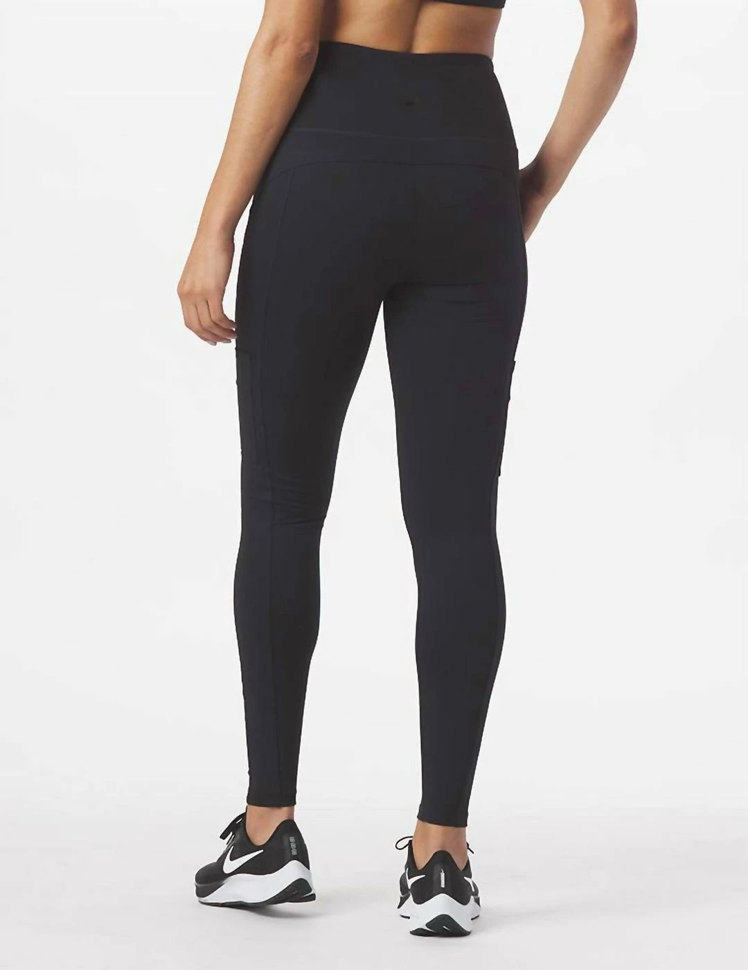 High waisted compressive fit, complete with pockets and seams that disguise this legging as a pant. The Cargo Legging looks just as nice with a pair of boots as it does with your running shoes.