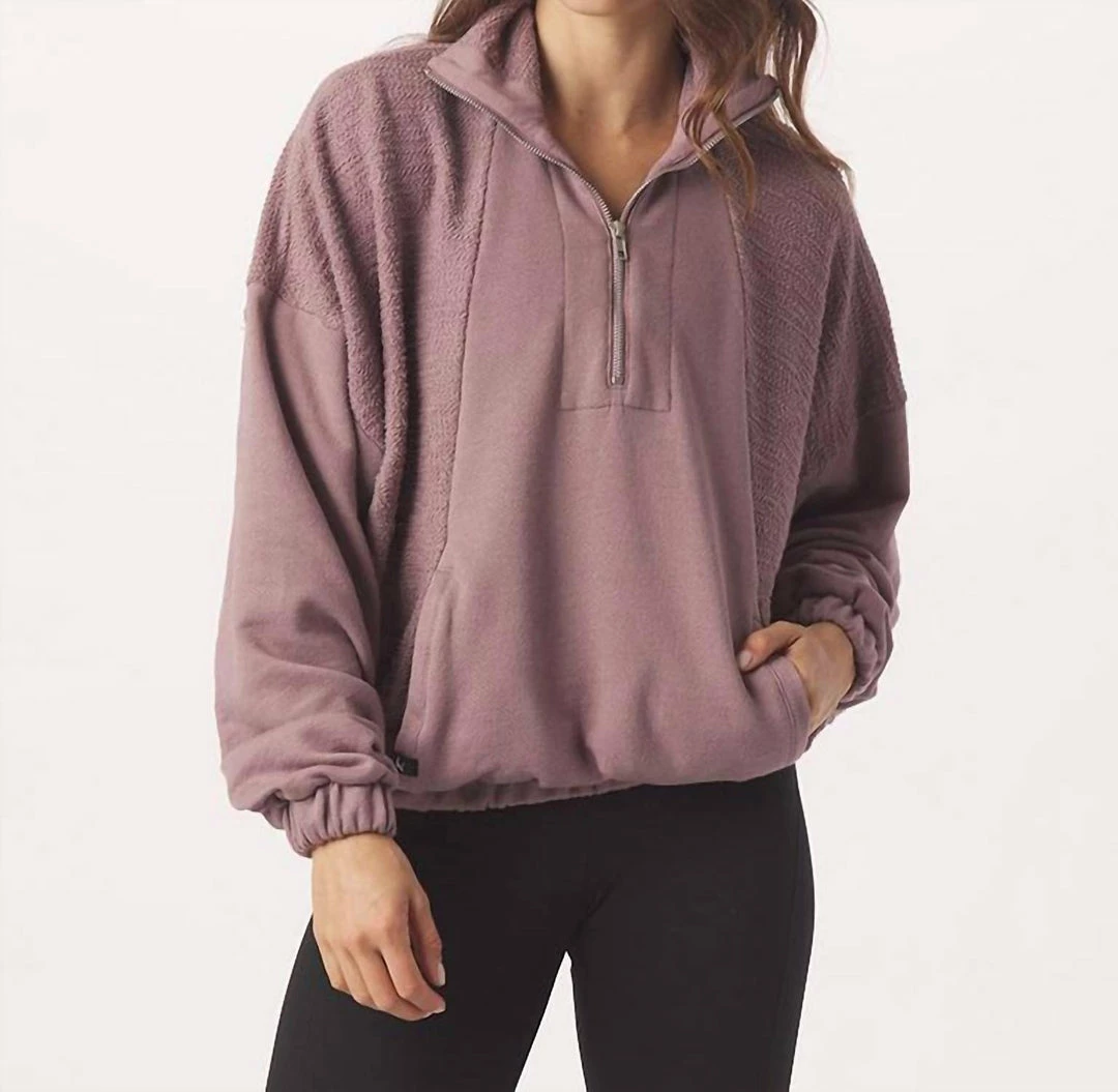Look no further. Our Complex Quarter Zip is a loose fit, boxy sweater made in our ultra-cozy French Terry fabric. Textured paneling detail gives this layering piece the perfect amount of flair.DETAILS• Oversized fit• Contrast fabric mixing• Cuffed elastic hems