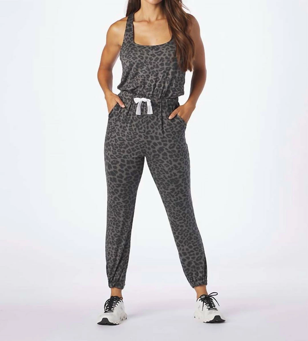 This relaxed fitting onesie is tapered at the waist and ankles, making it a convenient one and done outfit for lounging and casual wear.