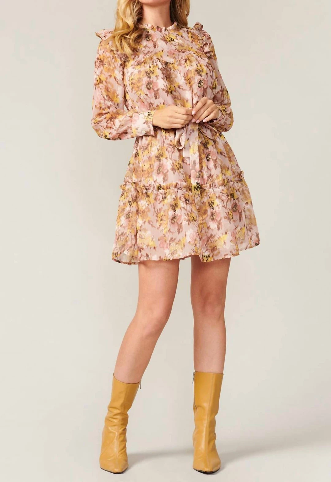 Floral Print, Ruffled Shoulders, Yoke Collar, And Tiered Skirt