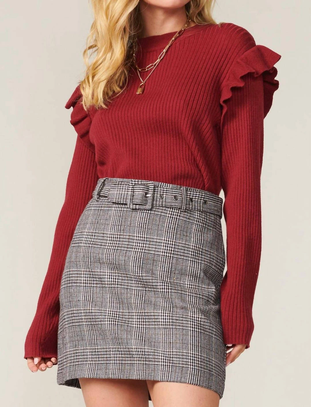 Be the first to review “Greylin Freda Ruffled Sweater in Burgundy – women” Cancel reply