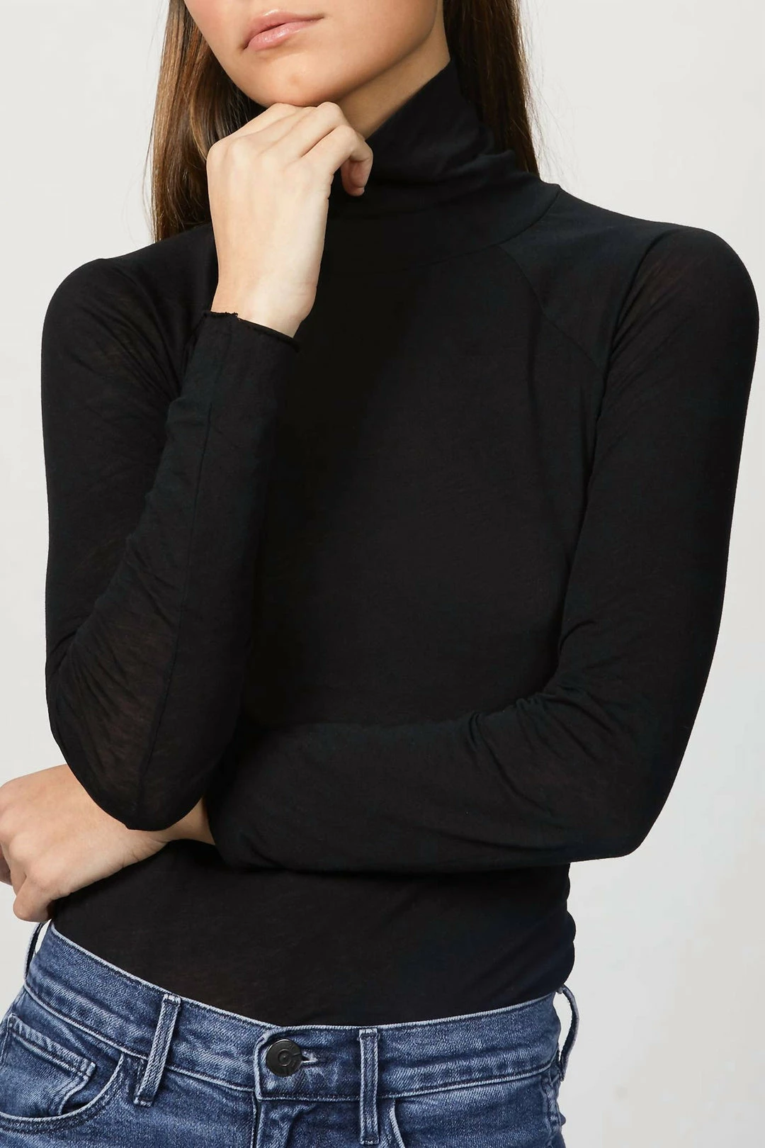 This ‘Hansel’ turtleneck top is timeless and made from black sustainable organic cotton – which is an important principle to the brand. It is incredibly soft and cut for a close fit that is perfect for layering.Fabrication – 100% Organic Cotton