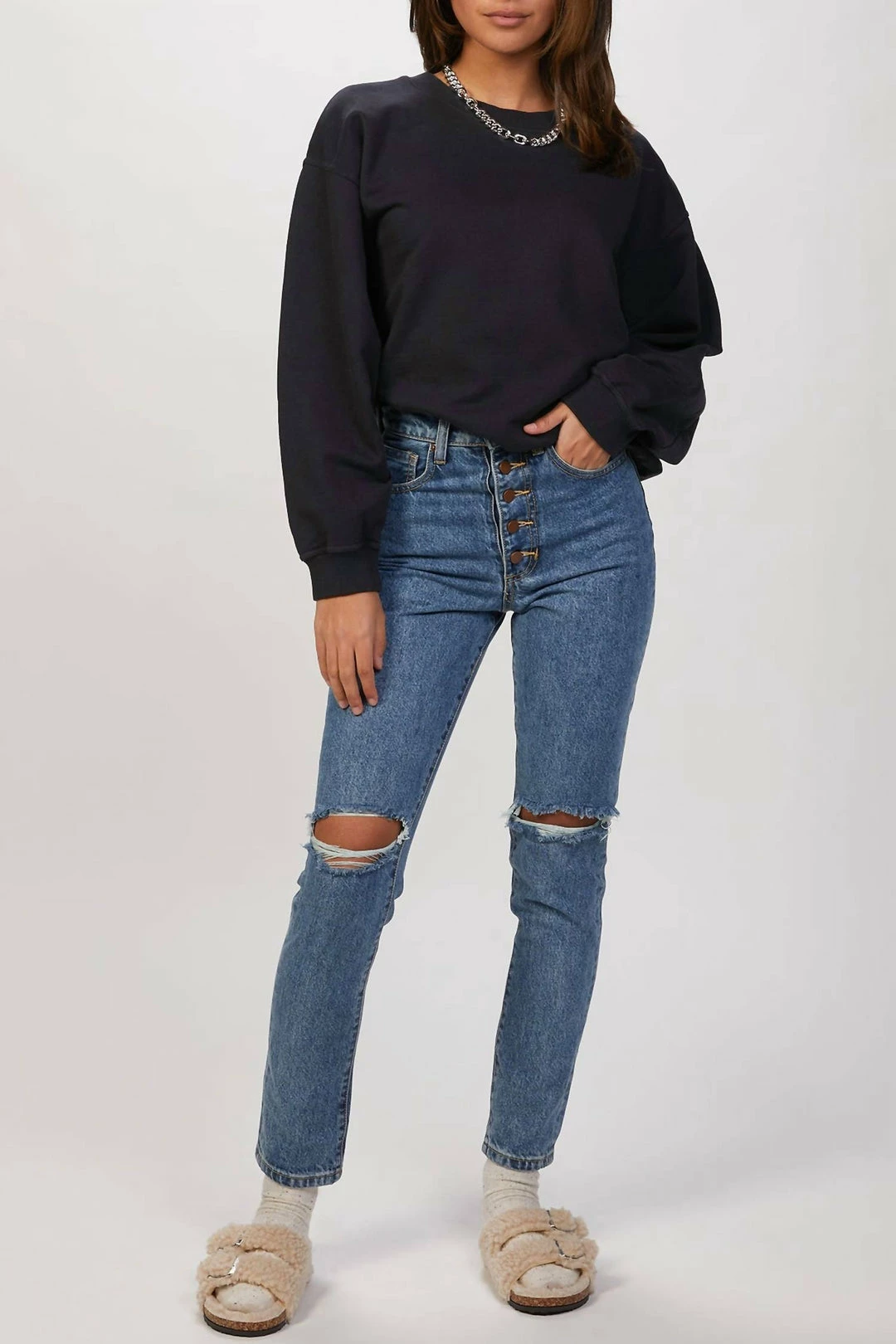 Made from soft and breathable organic cotton, Humanoid’s sweatshirt has dropped shoulders to enhance the loose fit and is perfect for relaxing.Fabrication – 100% Organic Cotton