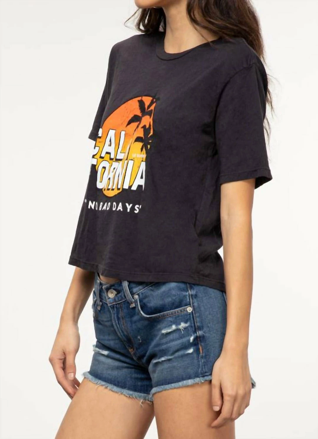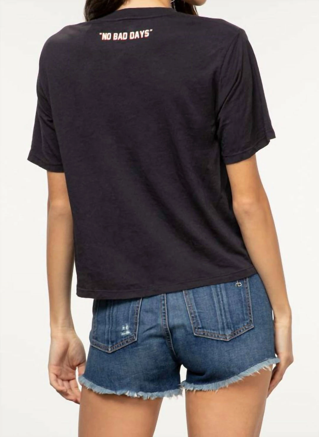 California “No Bad Days’ graphic teeCrew necklineRelaxed, crop fitModel is 5’11”, wearing XS