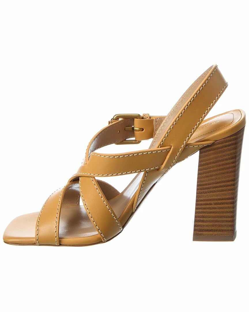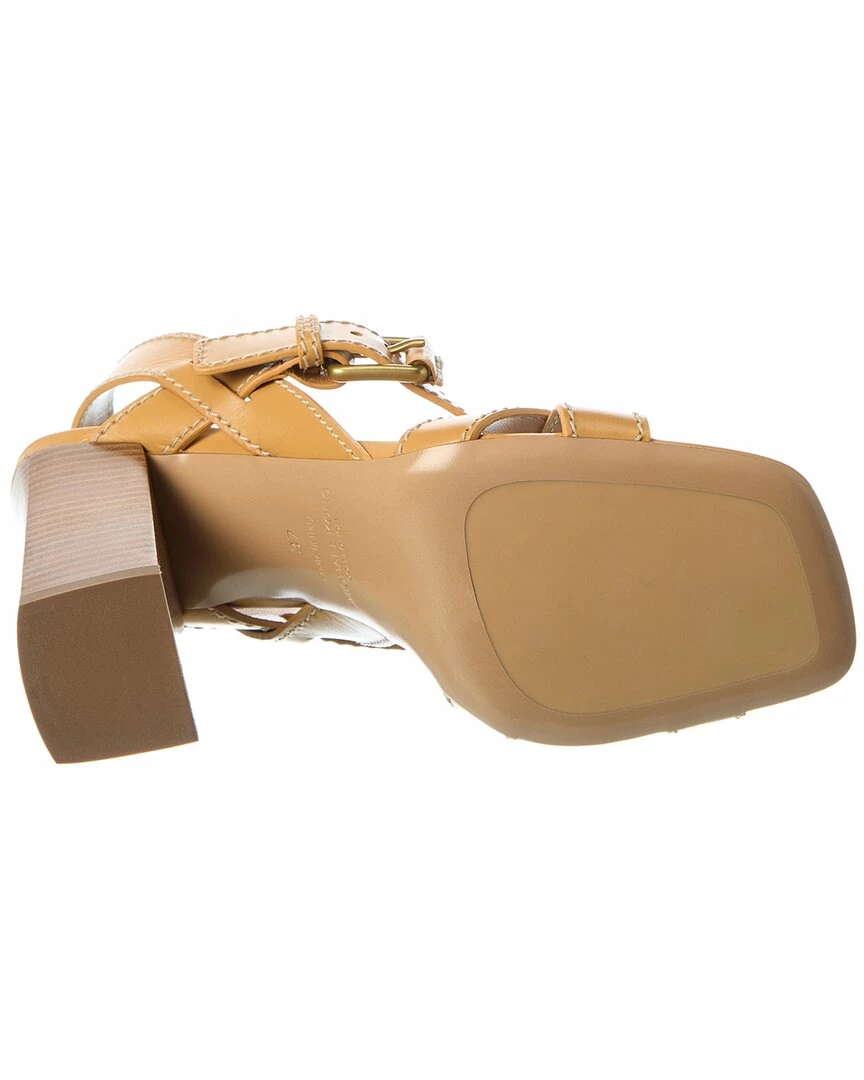 - Gladys Leather Sandal In Wheat Leather And Gold-Tone Hardware