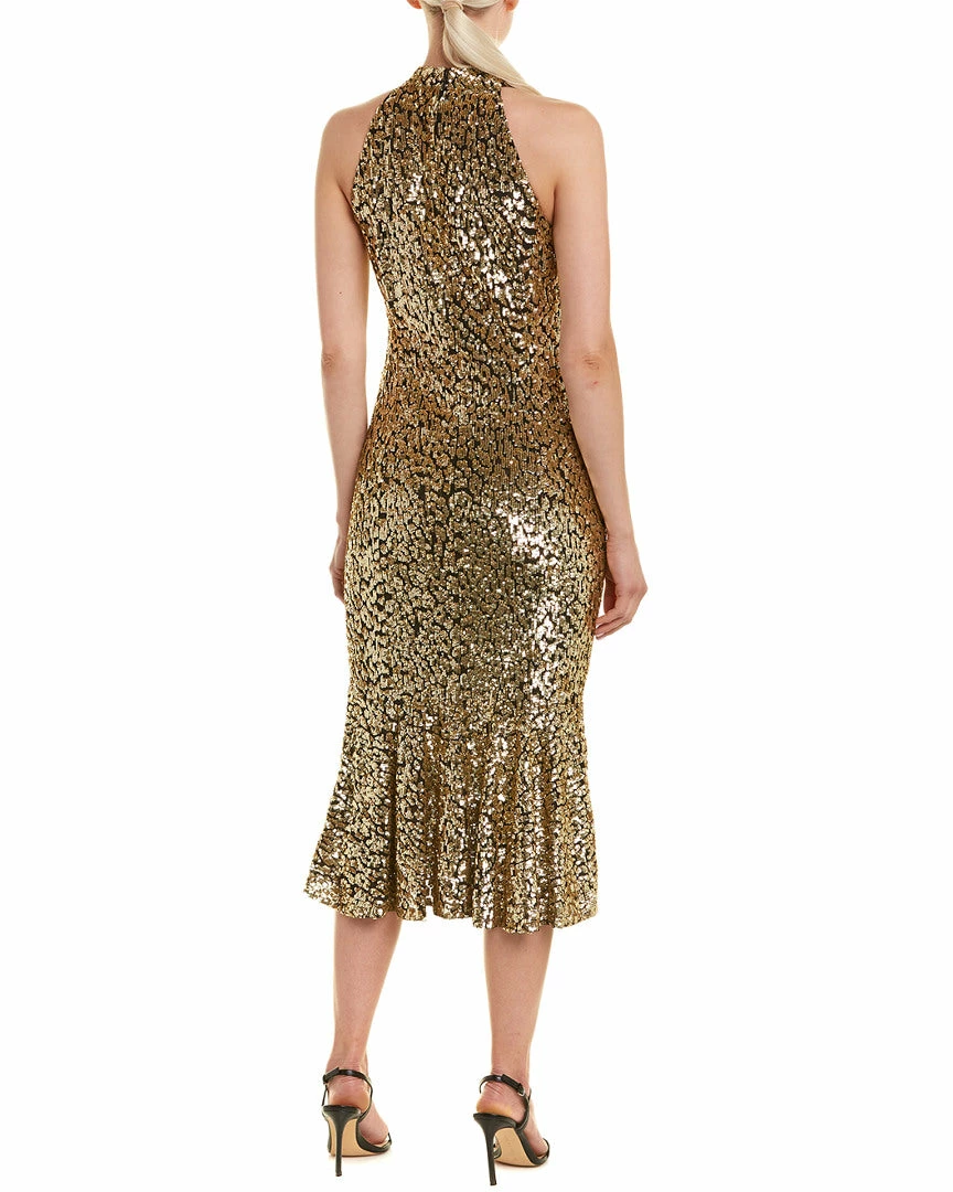 - Design Details – Sequin Design, Halter Neckline, Flared Hem