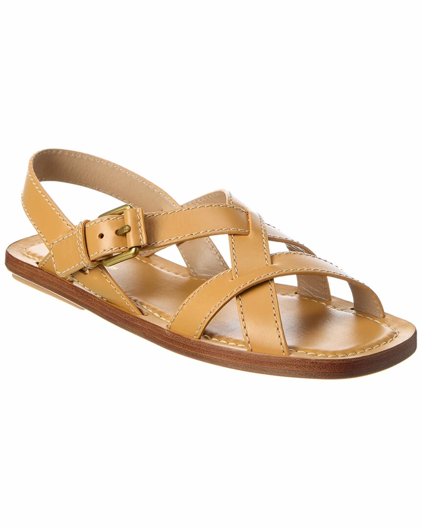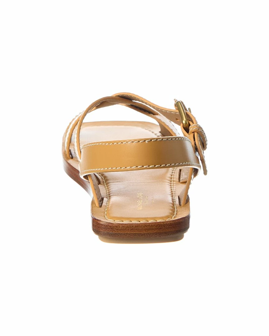 - Perrine Leather Sandal In Wheat Leather And Gold-Tone Hardware