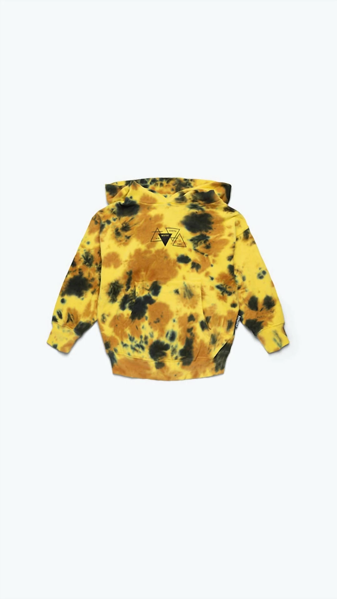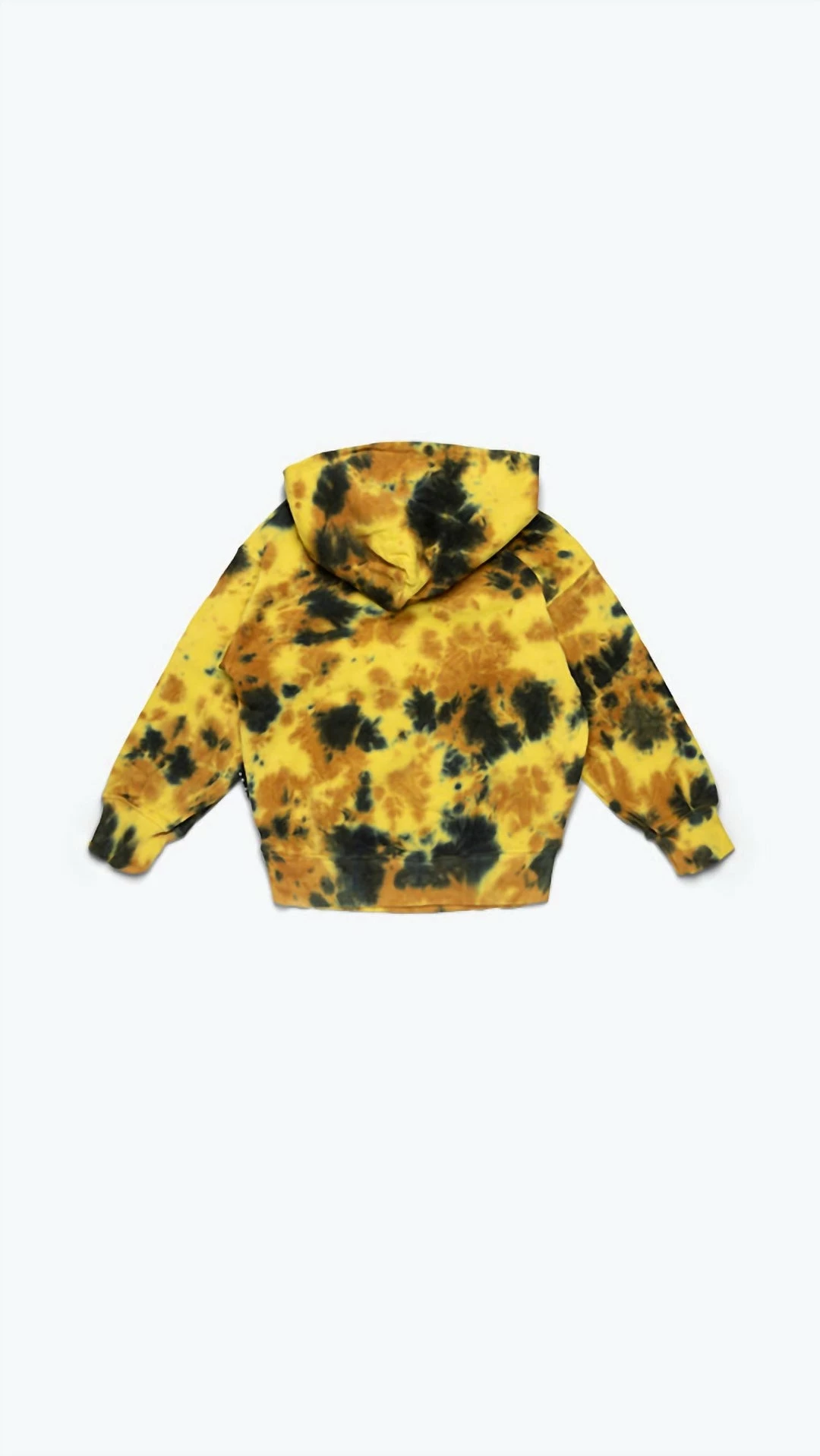 Yellow and black tie-dye hoodie with a pouch on the frontGentle wash, wash separately