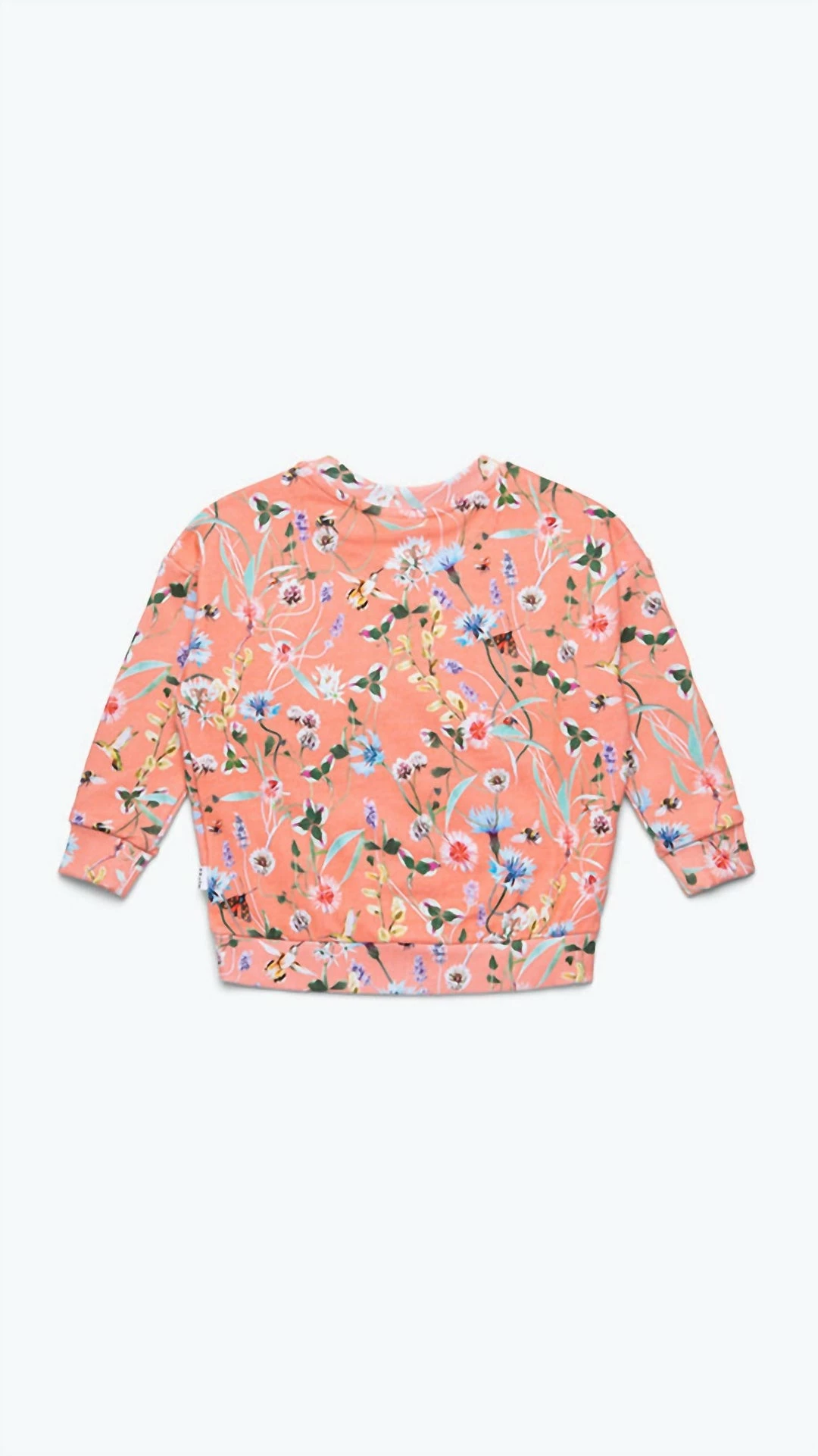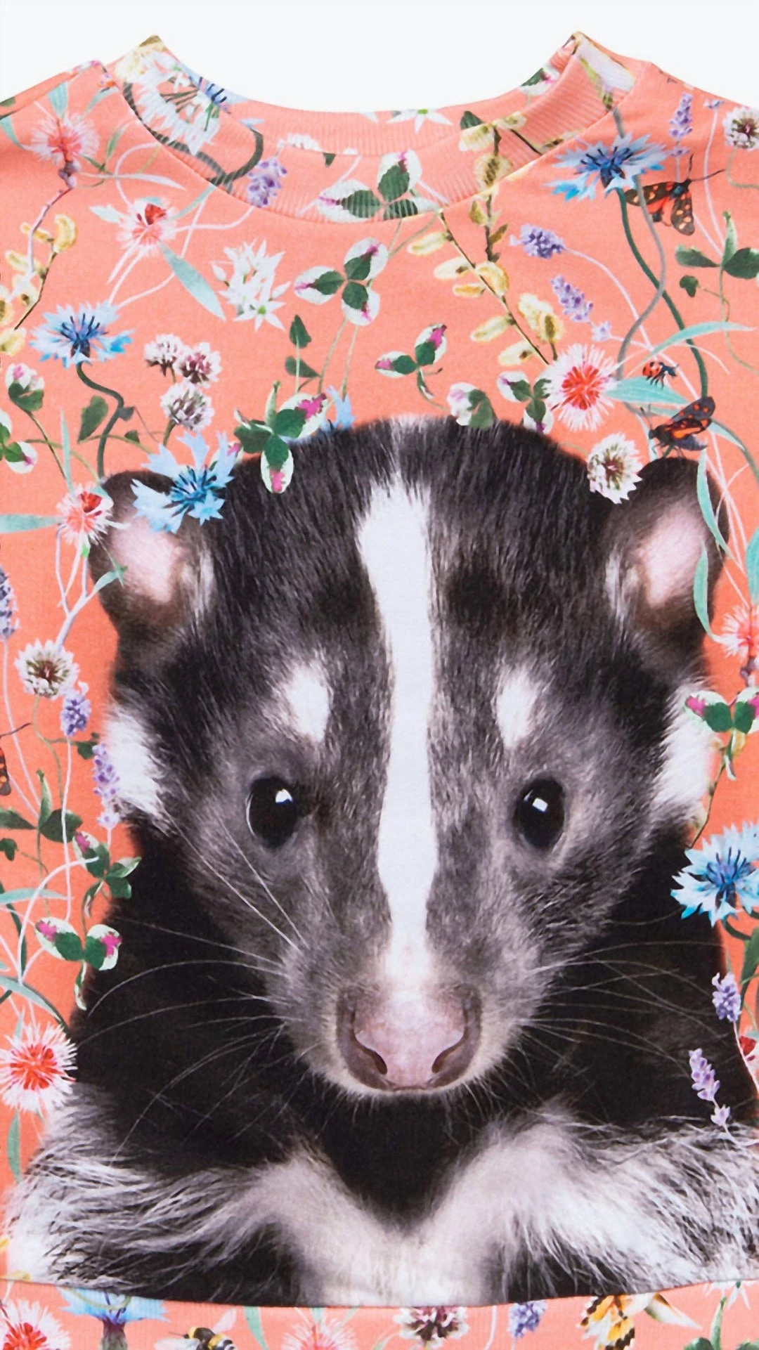 Coral children’s sweatshirt with a print of wild flowers and a badgerOversized fitGentle wash, inside outSize Guide – 98 – 3y, 104 – 4y, 110 – 5y, 116 – 6y, 122 – 7y, 128 – 8y, 140 – 10y, 152 – 12y