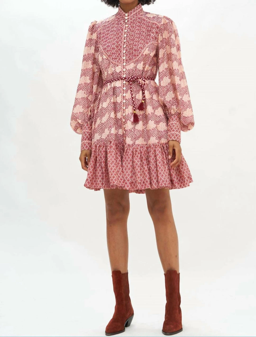 Made from a luxurious blend of silk and cottonFully linedButton feature down the frontMatching braided beltIntricate hand-sewn pintucking Tiered contrasting skirt detailModel is 5’8″ and is shown wearing a size SmallCare InstructionsWash on a cold delicate cycle with gentle detergentLay flat or hang dryTurn inside out before washing if there are appliqués or gold-painted detailing on the garmentAll styles can be dry-cleaned and steamed
