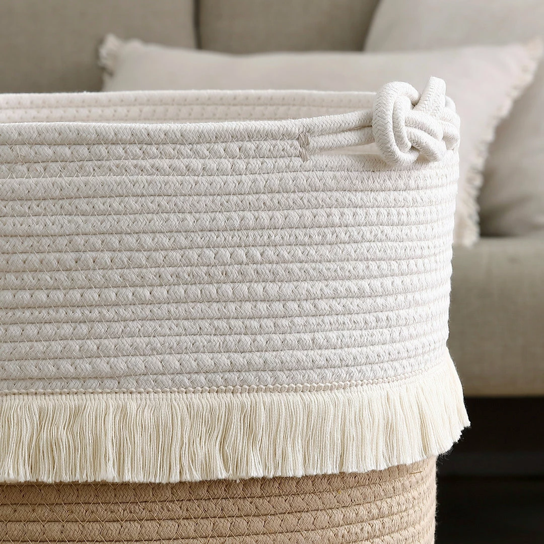 When you’re looking for an easy, multi-purpose solution for storage, laundry, and organizing, our 100% cotton woven basket is the answer. Designed with two durable handles, it can hold baby’s laundry and is made from an all-natural material making it safe for kids of all ages. Need to declutter your bedroom? Moms adore this sturdy basket that can house pillows, a comforter, linen, blankets and more keeping the bedroom oasis tidy on a daily basis. If your laundry room is disorganized, our woven basket can help you store clean towels and fits neatly in a closet or on laundry room shelves. Available in neutral colors to complement virtually any design style and is your must-have practical organizer for any room in your home.