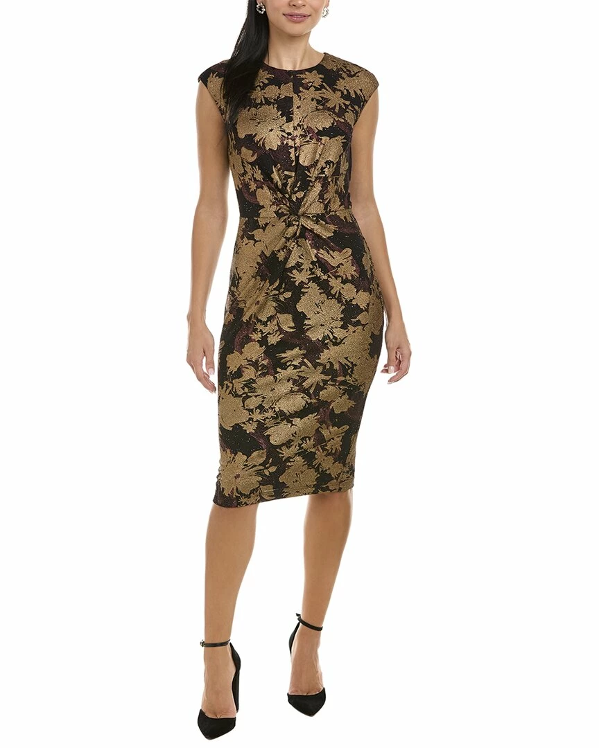 - Design Details – Jewel Neck, Twist Detail At Waist, And Metallic Design
