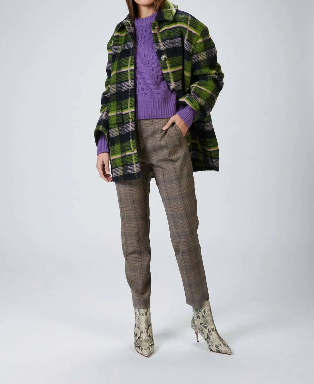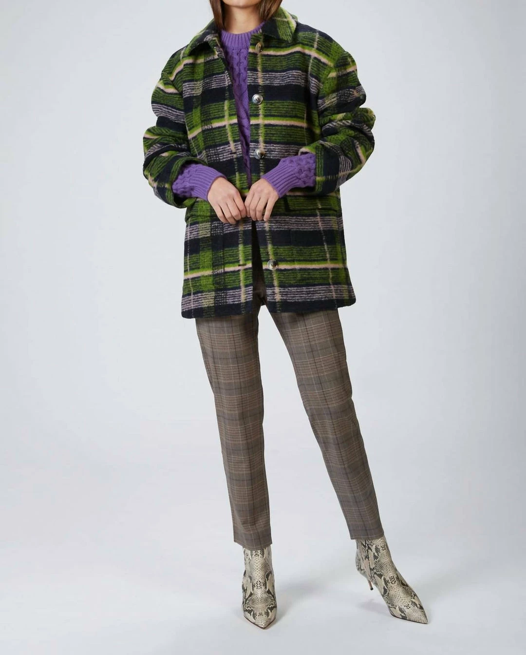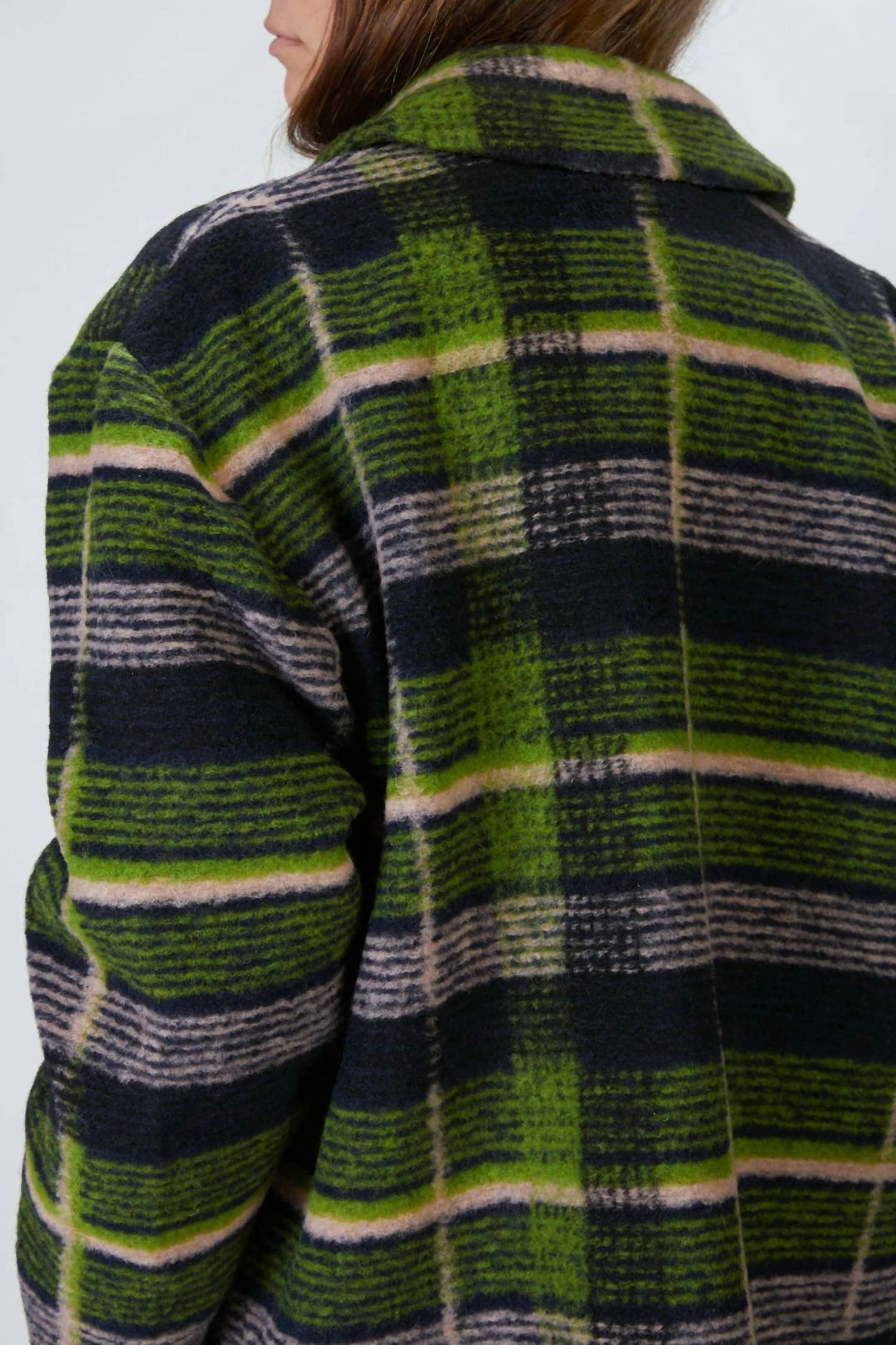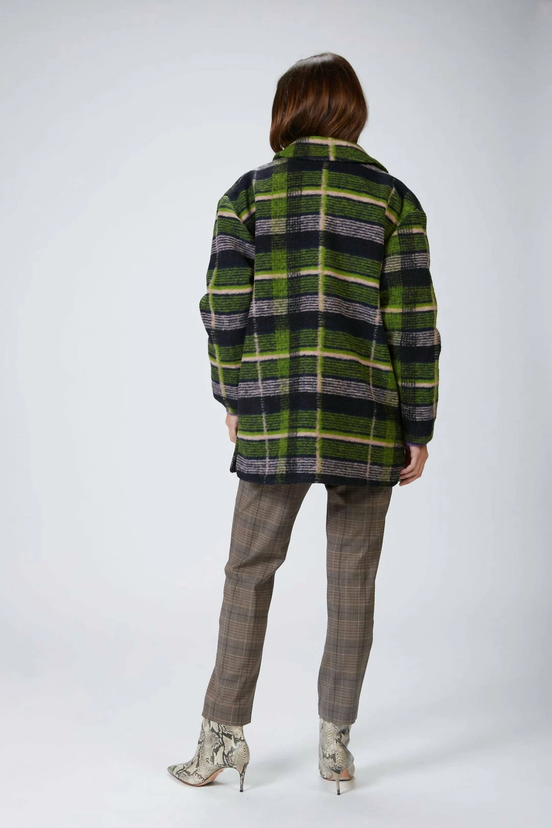 Cut in a relaxed silhouette, this ‘Lottie’ jacket is a modern-chic way to layer looks in-between seasons. Crafted from a warming wool blend in a dark green and navy plaid print, it is cut just above the thigh and features patch pockets with flaps. Fabrication –  78% Wool, 22% PolyesterCare –  Dry cleanStandard Clothing SizingEllise is wearing size Small