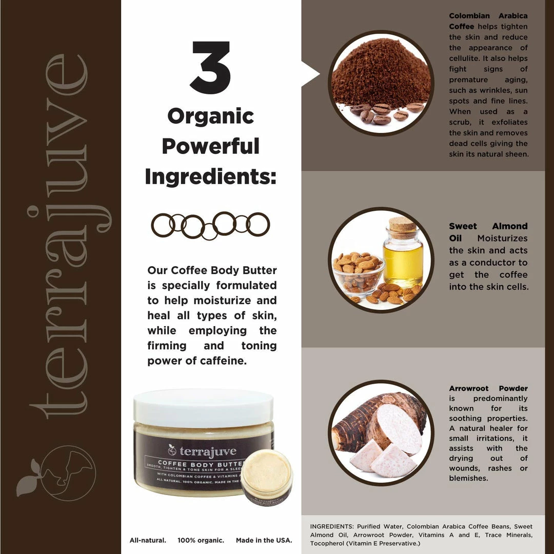 Our COFFEE Body Butter is specially formulated to help smooth, tighten and tone your skin, temporarily reducing the appearance of cellulite.
