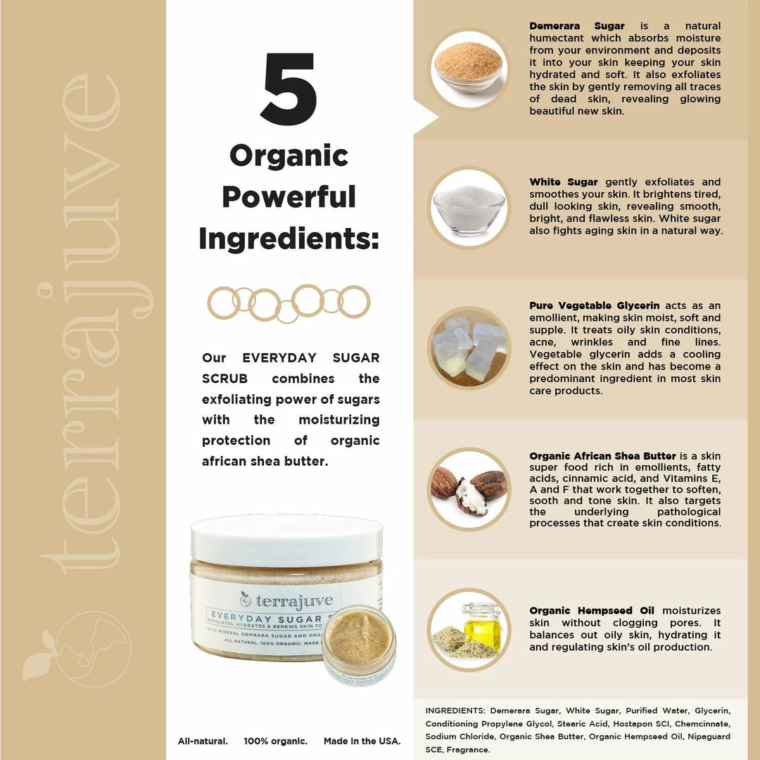 Our Demerara Sugar Scrub is unlike any on the market (and we’ve looked). Instead of using plain White Sugar, Brown Sugar or Tuber Sugar (from GMO Beets), we use, without question, the finest sugar money can buy and for good reason.