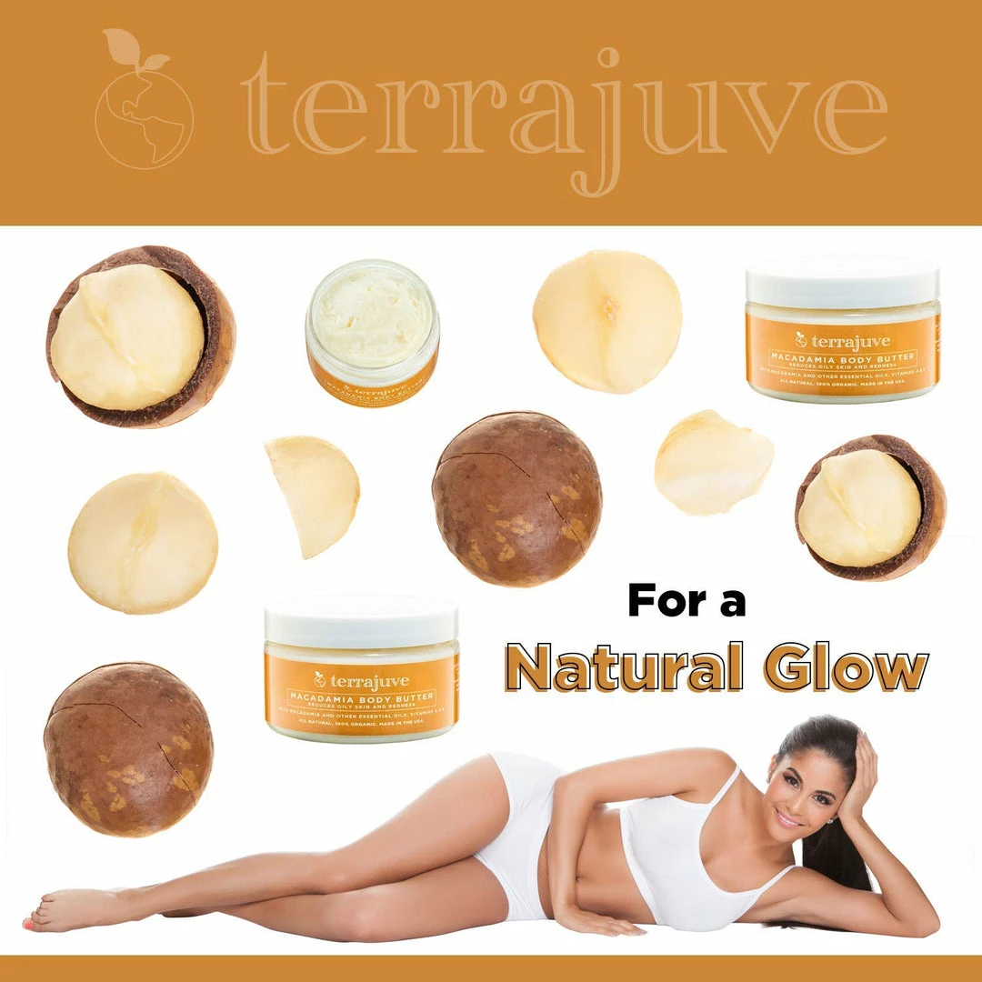Our MACADAMIA BODY BUTTER will give your skin a clean feeling and matte look, while reducing the appearance of redness.