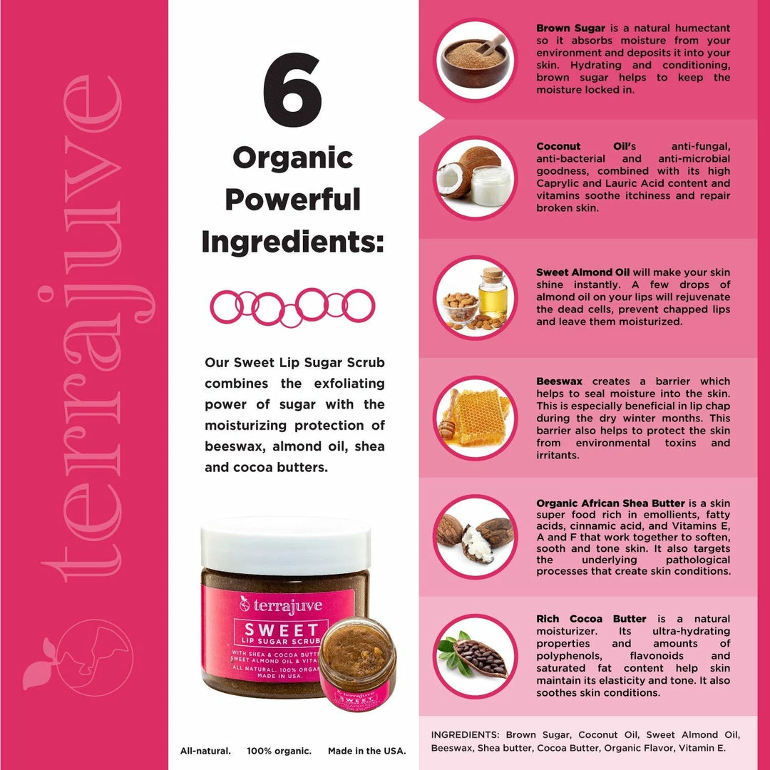 Our SWEET Lip Sugar Scrub combines the exfoliating power of sugar with the moisturizing protection of Shea and Cocoa Butters.