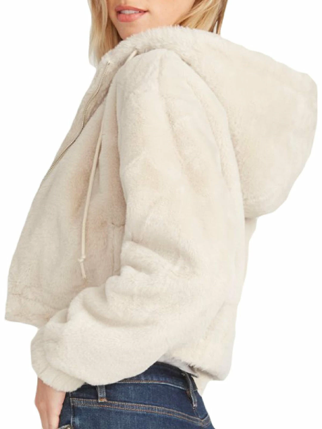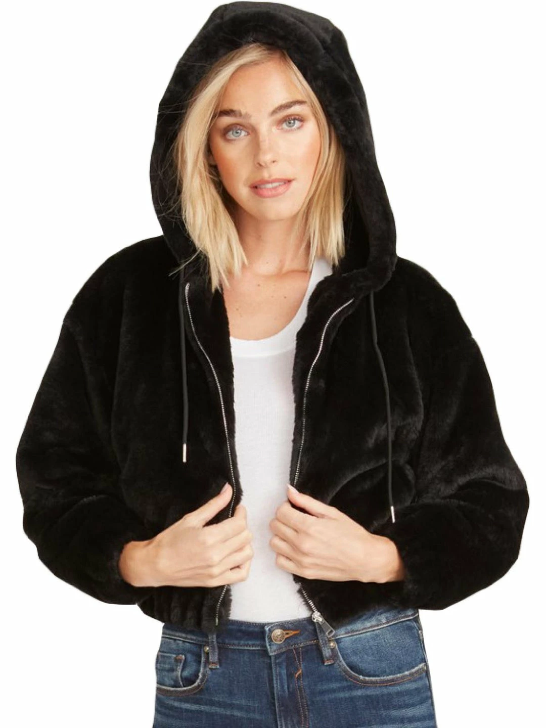 Stay chic and cozy in this cropped faux fur teddy jacket by Vigoss. Made with 100% polyester. This jacket’s soft faux fur coupled with a sexy cropped silhouette offer effortless cold weather style and warmth. It features slouchy sleeves and a hood to protect your face. It’s sassy style will pair perfectly with all your favorite denim, leggings, and more. The oversized body will allow you to layer all your favorite tops and accessories. Zipper closure. This jacket is guaranteed authentic.